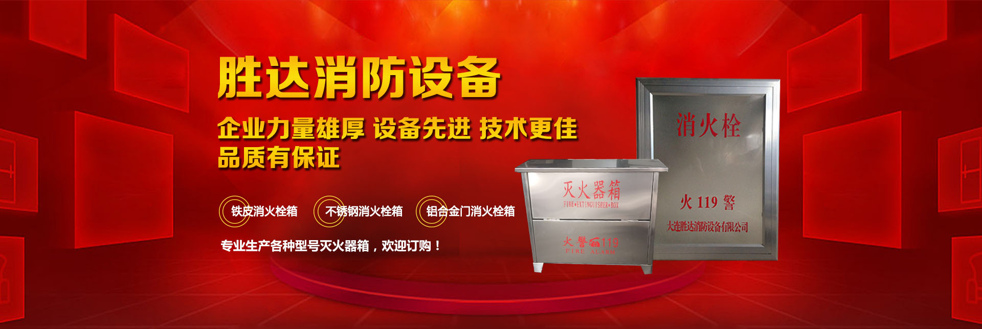 大連勝達消防設備有限公司本公司企業(yè)力量雄厚、設備先進,生產的所有消防產品均符合國家GB14561—J標準,品質有保證。我公司地理位置優(yōu)越,位于大連市甘井子區(qū)西北路847號交通便捷,公司專業(yè)生產各種型號滅火器箱、消火栓箱、鐵皮消火栓箱、不銹鋼消火栓箱、鋁合金門消火栓箱。消火栓箱系列產品,全部按照國家標準和行業(yè)標準進行生產,并通過國家合格鑒定,得到了國家固定滅火系統和耐火構件質量監(jiān)督檢驗中心的產品認證和產品形式報告書。我們的消火栓箱系列產品具有外形美觀、結構先進、開啟靈活、使用可靠、消火應急燈具標志清晰、光色好、功耗低、使用壽命長、安裝使用簡便,可廣泛應用于高層建筑和工業(yè)等一些公關場所使用。